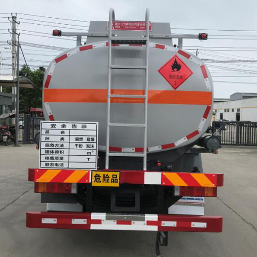 罐體有效容積:9.77立方米,危險貨物運輸車輛的類型為FL型,介質zui大密度700(kg/ m3);罐體尺寸(長×長軸×短軸)(mm)為:4790×1950×1350;僅采用3800mm軸距;選裝出口箱樣式;側、后防護裝置材料材質:Q235B,側、后防護均采用螺栓連接,后防護裝置斷面尺寸為(mm):80×150,后部防護離地高度:430mm;安裝具有衛(wèi)星定位功能的行駛記錄儀,安裝前輪pan式制動器及限速裝置,限速80km/h,僅采用底盤子午線輪胎; ABS型號及生產廠家為:3631010-C2000/東科克諾爾商用車制動系統(tǒng)(十堰)有限公司,J ABS/焦作博瑞克控制技術有限公司;發(fā)動機型號及油耗值(L/100km)為:YCY30165-60(19.7), D30TCIF1(19.8)轉向輪安裝bao胎應急防護裝置;該車型可選裝ETC車載裝置