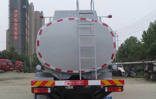 該車型為非危化品運輸車,由罐體、泵、供液系統等專用裝置組成,主要用于向井場運送液體并配合壓井作業;罐體有效容積:18立方米,介質:洗井泡沫液;罐體尺寸(長×長軸×短軸)(mm):6800×2200×1550;僅采用4375+1400mm軸距;側、后防護裝置材質均為:Q235B,側、后防護均采用螺栓連接,后防護裝置斷面尺寸為(mm):80×150,后部防護離地高度:500mm;隨底盤選裝駕駛室,選裝尾部帶供液口,選裝箱門;安裝帶衛星定位功能的行駛記錄儀;ABS系統生產廠家及型號分別為:西安正昌電子股份有限公司(ZQFB-V);發動機型號及油耗值(L/100km)為:WP8.320E61