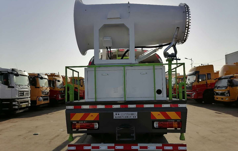 消防灑水車安裝消防車專用消防泵、消防炮、消防取力器。罐體后帶工作平臺(tái),平臺(tái)上安裝綠化灑水炮,灑水炮可全方位旋轉(zhuǎn),帶前沖后灑,帶側(cè)噴,可連續(xù)調(diào)成直流狀、霧狀、大雨、小雨、毛毛雨,帶安全護(hù)欄。罐體頂部安裝消防水炮。帶消防接口,可通過消防栓進(jìn)水,帶自流閥,消防綠化卷盤。