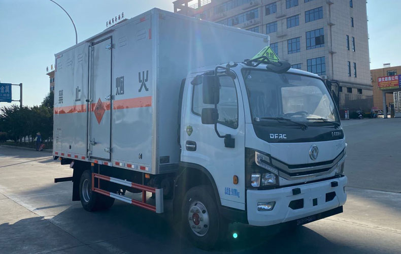 1、該車適用于運輸危險品,運輸具有獨立容器(瓶)包裝的物品,危險貨物運輸車輛類型:EX/Ⅲ,危險貨物類項號:1.1B,1.1G,1.3C,1.1D,1.2D,1.1C,1.4G。廂體頂部封閉,不可開啟。2、側、后防護材料為Q235,側防護螺栓連接,后防護焊接,截面尺寸(mm)100×50,下邊緣離地高450mm。3、隨底盤選裝駕駛室;僅選用排氣管前置、限速裝置(限速80km/h)、前輪盤式制動及子午線輪胎的底盤,轉向輪安裝輪胎爆胎應急防護裝置。安裝帶有衛星定位功能的行駛記錄儀。選裝ETC。ABS系統控制器型號/生產廠家: ABS/ASR-24V-4S/4M/襄陽東風隆誠機械有限責任公司。發動機/油耗值(L/100km)對應關系為: ZD30D16-6N/17.2,YCY24140-60/16.5, NV30-C6G/17.3, D4.0NS6B170/17.1, CY4SK261/17.4, YCY30165-60/17.5, CY4BK361/17.9。廂體側面選裝開門型式及位置,選裝不帶側開門,選裝后門雙拉桿,廂體側面板選裝開百葉窗。隨底盤選裝電瓶、儲氣罐安裝位置。選裝后視鏡.