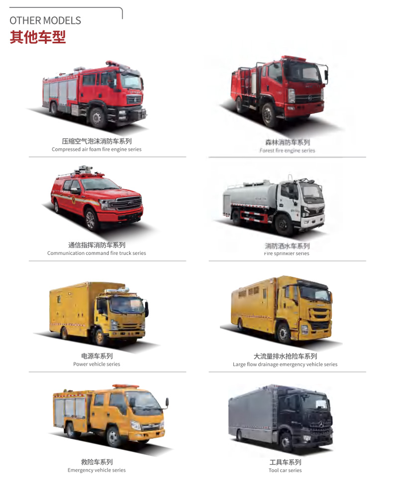 水罐消防車/泡沫消防車/化學救援消防車/搶險救援消防車/干粉水(泡沫)消防車功能說明: